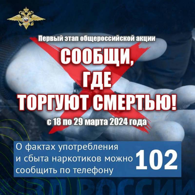 Дата публикации: 21 марта 2024 ![]() На территории Отрадненского района в период с 18 по 29 марта 2024 года пройдет первый этап Всероссийской антинаркотической акции «Сообщи, где торгуют смертью!» Целью акции является привлечение общественности к участию в противодействии незаконному обороту наркотических средств, сбор и проверка оперативно-значимой информации, оказание квалифицированной помощи и консультаций по вопросам лечения и реабилитации наркозависимых лиц. Уважаемые жители и гости района! Если вы располагаете какой-либо информацией о фактах незаконного оборота наркотических средств и психотропных веществ, наркопритонах и лицах, распространяющих запрещенные вещества, а также их незаконной рекламы и пропаганды, необходимо незамедлительно сообщать в Отдел МВД России по Отрадненскому району, телефон : (886144) 3-32-00. - дежурная часть ОМВД России по Отрадненскому району: (861 44) 3-32-00 (круглосуточно) или по номеру 02 (102 с мобильного телефона); - отделение по контролю за оборотом наркотических средств ОМВД России по Отрадненскому району: 8 (861 44) 3-50-29 (с 9.00 до 18.00 в рабочие дни); - антинаркотическая комиссия муниципального образования Отрадненский район: 8 (861 44) 3-31-58 (с 9.00 до 17.00 в рабочие дни); - комиссия по делам несовершеннолетних при администрации муниципального образования Отрадненский район (861 44) 3-34-15 (с 9.00 до 17.00 в рабочие дни); - наркологическая служба взрослой поликлиники МБУЗ «Отрадненская ЦРБ»: (861 44) 3-58-29 (с 9.00 до 17.00 в рабочие дни); - МКУ «Комитет по делам молодежи муниципального образования Отрадненский район» (861 44) 3-45-60 (с 9.00 до 17.00 в рабочие дни); - МКУ «Комитет по физической культуре и спорту муниципального образования Отрадненский район» (861 44) 3-41-95 (с 9.00 до 17.00 в рабочие дни). Звонок может быть анонимным! Антинаркотическая комиссия приглашает к сотрудничеству всех, кому небезразлично будущее наших детей, всех, кто осознает опасность сложившейся ситуации, независимо от пола и возраста, вероисповедания и политических взглядов. Не оставайтесь равнодушными! Сообщите, где торгуют смертью! |